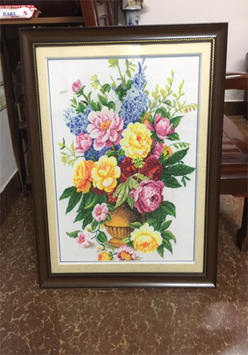Tranh thêu chữ thập bình hoa khoe sắc |